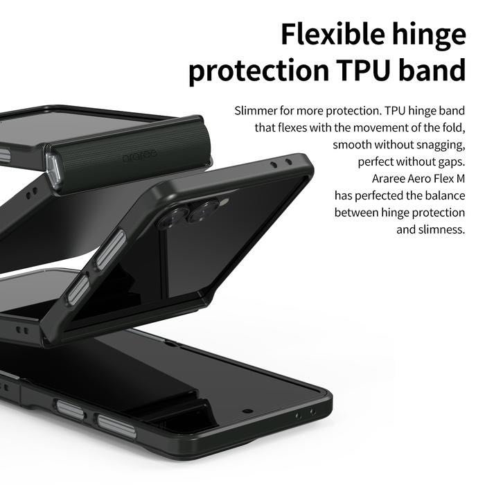 Jangan khawatir lagi dengan goresan, benturan, atau kerusakan pada engsel Z Flip 7 Anda! Setiap case dalam seri Araree Aero Flex dilengkapi dengan Hinge Protection TPU Flexible yang cerdas. Mekanisme ini memastikan engsel ponsel Anda terlindungi secara optimal namun tetap fleksibel, menjaga kemudahan saat membuka dan menutup perangkat. Meskipun perlindungannya maksimal, case ini dirancang super ramping dengan ketebalan hanya 1.7mm dan sangat ringan