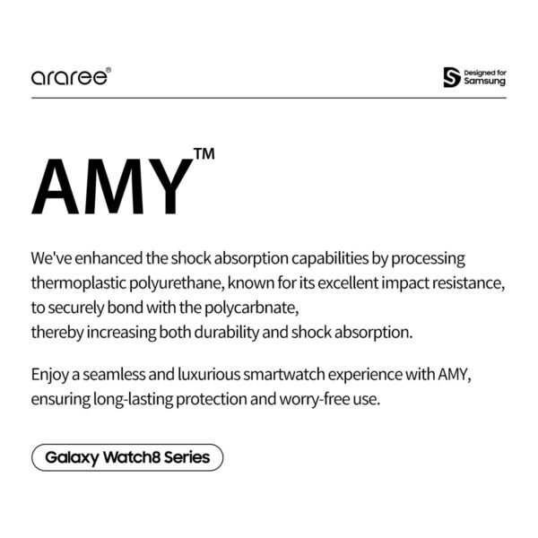 Proteksi Tangguh dengan Gaya Sporty & Modern! Araree Amy Case dirancang khusus untuk Anda yang aktif dan ingin memberikan perlindungan tingkat tinggi pada Samsung Galaxy Watch 8. Berbeda dengan seri Nukin yang bening, seri Amy hadir dengan kombinasi material hybrid yang lebih tebal di titik-titik krusial untuk meredam benturan ekstrem.