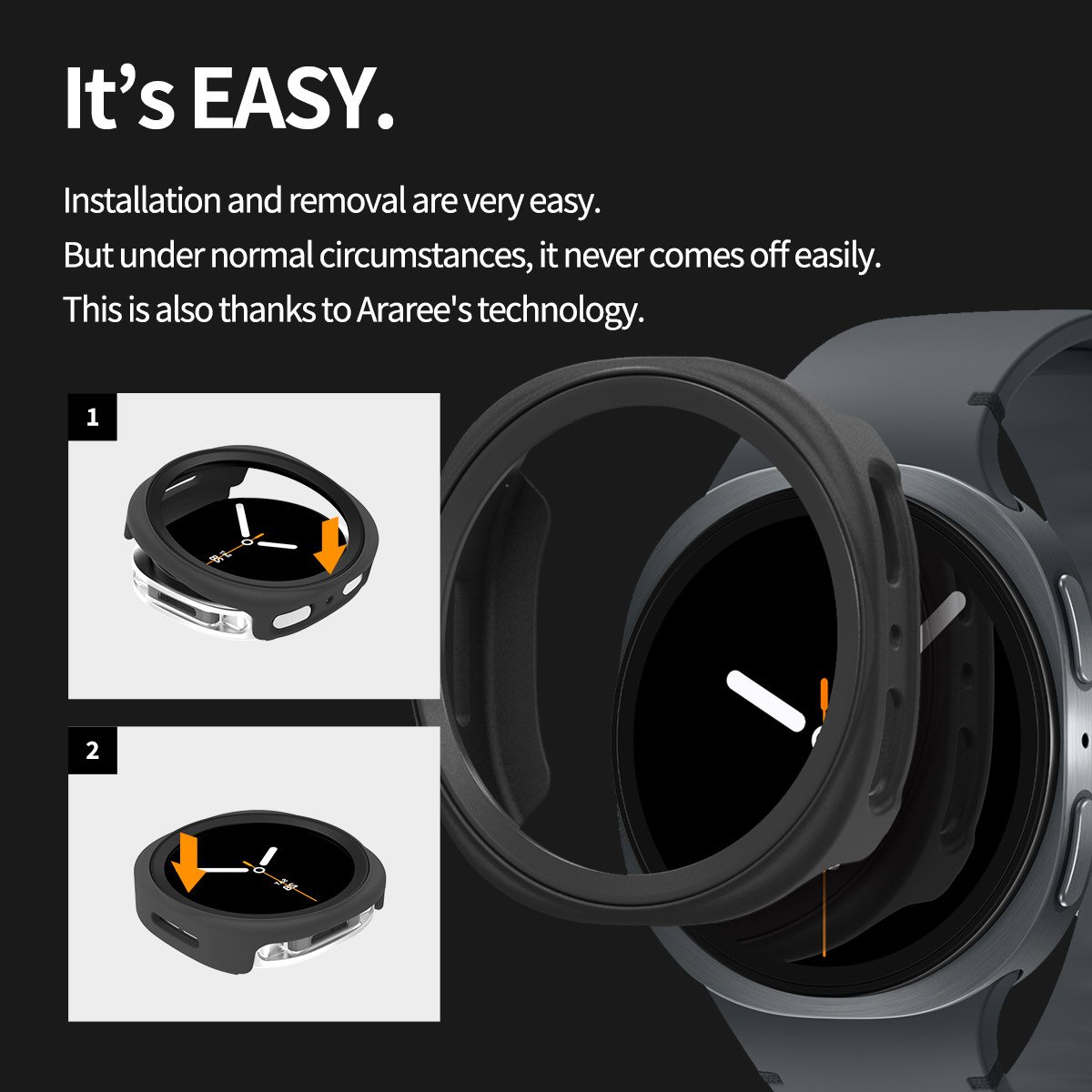 Sebagai partner resmi Samsung (SMAPP), Araree memastikan setiap cut-out tombol dan sensor tetap presisi, sehingga fitur kesehatan dan navigasi jam tangan Anda tetap berfungsi 100% normal.
