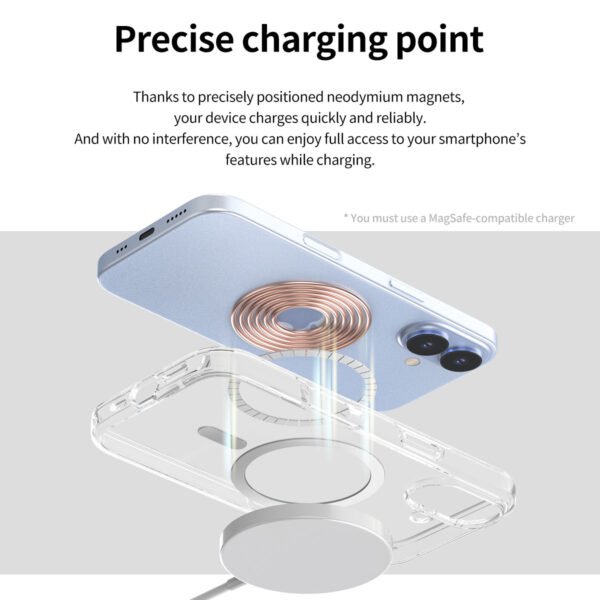 Sebagai mitra resmi Apple (MFI), magnet MagSafe pada case ini terintegrasi sempurna di dalam struktur case, memastikan koneksi yang sangat stabil untuk charger maupun aksesori MagSafe lainnya.