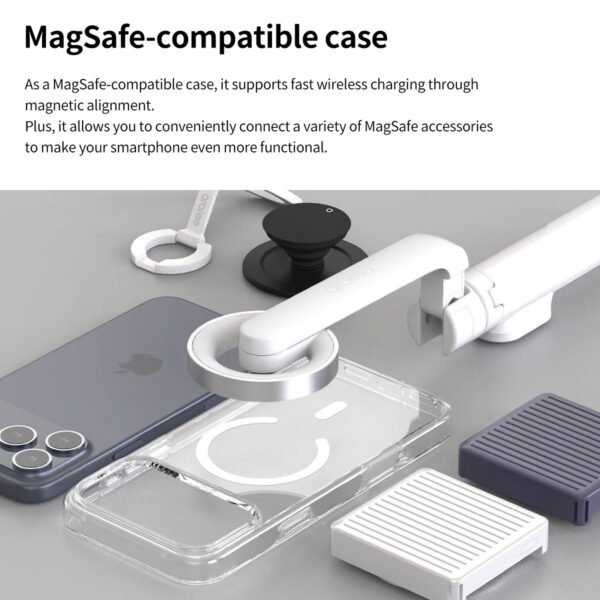 * Strong Magnetic Connection: Dilengkapi dengan ring magnet N52 premium yang sangat kuat. Aksesori MagSafe seperti dompet, powerbank, atau car mount tidak akan mudah terlepas.
