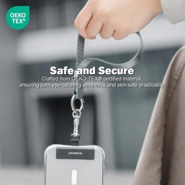 Strap Lanyard ini menggunakan material bahan nilon OEKO-TEX yang tidak beracun dan lembut untuk kulit anda