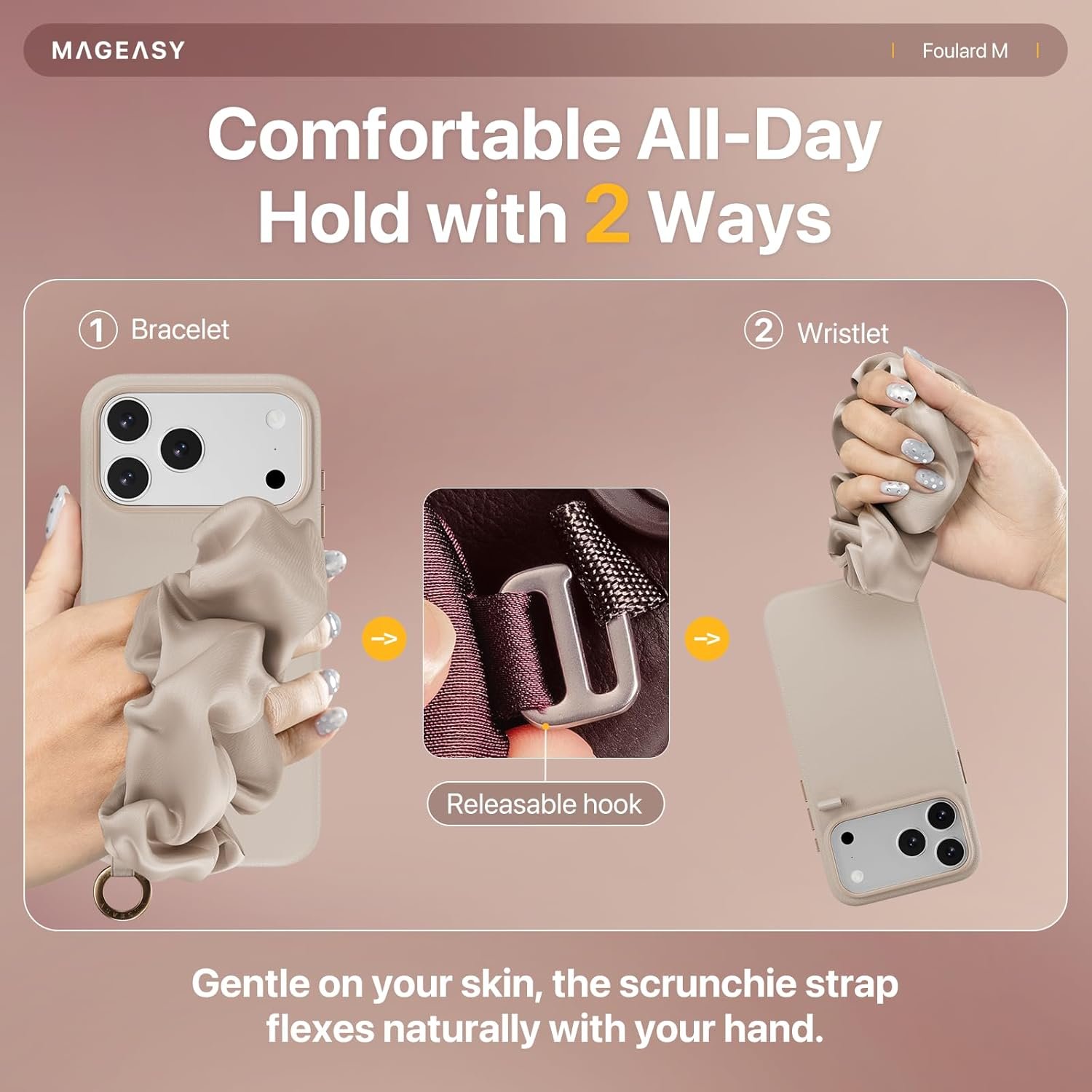 Case yang Fashionable Sekaligus Anti-Jatuh! MAGEASY Foulard M ini adalah case yang level elegannya beda! Menggabungkan proteksi military-grade dengan bracelet/wrist strap (tali pergelangan tangan) bergaya syal/scarf yang super chic. Cocok banget buat kamu yang pengen HP-nya selalu di tangan (anti-copet & anti-jatuh), tapi tetap terlihat stylish kayak lagi pakai aksesoris premium.
