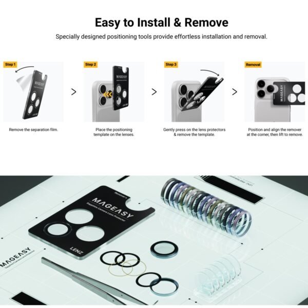 Dengan ketebalan yang sangat minimal (approx 0.25mm0 pelindung ini terintegrasi mulus dengan kamera iPhone 17 Series dan kompatibel dengan hampir semua case. Dilengkapi Template Installation khusus untuk pemasangan yang mudah dan akurat.