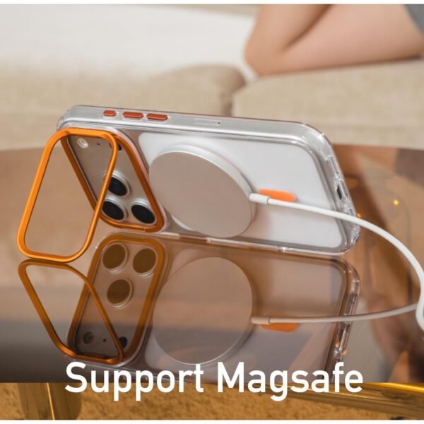 Cincin magnet NdFeB tertanam sempurna di casing. Langsung nempel kuat dengan semua aksesoris MagSafe (Charger, PopSocket, Wallet, dll.). No more kendala wireless charging atau magnetic attachment.