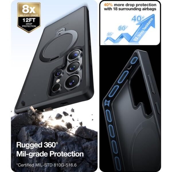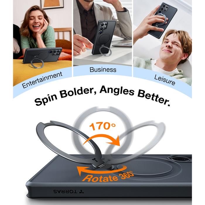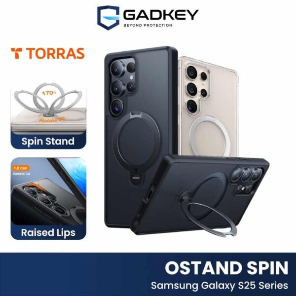Torras Ostand Spin Case Samsung S25 Ultra / S25 Plus / S25 adalah case yang memiliki built-in kickstand dan pada bagian kickstand nya dapat diputar hingga 360 yang sekaligus dapat berfungsi sebagai magsafe. Case S25 Series ini juga sudah memiliki sertifikasi military grade 16ft, raised lips bezel, sehingga cocok untuk penggunaan sehari-hari.